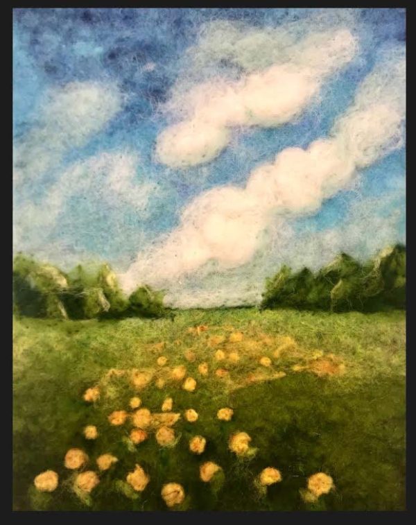In this workshop you will learn the art of painting with wool! This is a process of using small layered pieces of colored sheep’s wool to create an image. This medium is incredibly fun and forgiving. A great art form for all levels! Leave with a 5×7 flower felid wall piece you can be proud of!